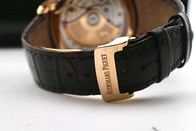 Unbelievable find – discontinued 4101 AP movement in solid rose gold. 100k look with the skeleton dial and tourbillon look. Large case but wears much smaller. AP craftmanship a must have.