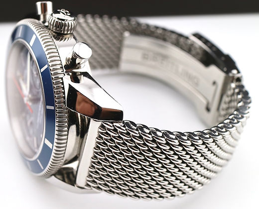 With the blue dial and blue bezel this divers chronograph makes this a truly unique watch. The large case has great wrist presense. Watch is in very good condition and includes an additional Breitling blue divers strap