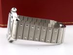 Elevate your style with the Cartier Santos Blue Men’s Stainless Steel Bracelet Watch. This luxury wristwatch boasts a 40 mm case made of high-quality stainless steel with a screwed bezel type and Roman Numerals indices. It features a beautiful blue dial color that perfectly complements its silver bezel and bracelet band.