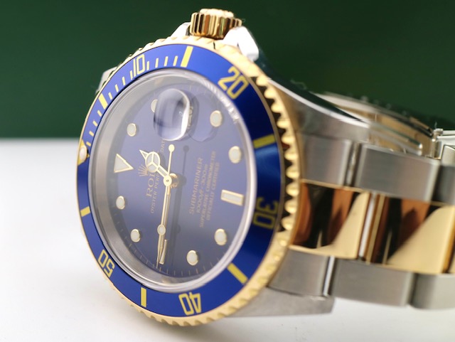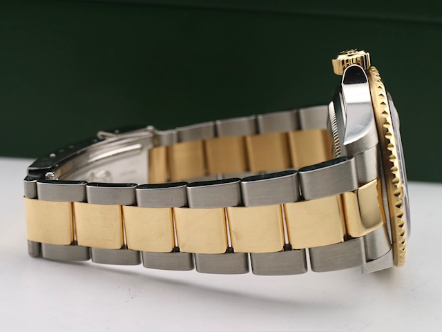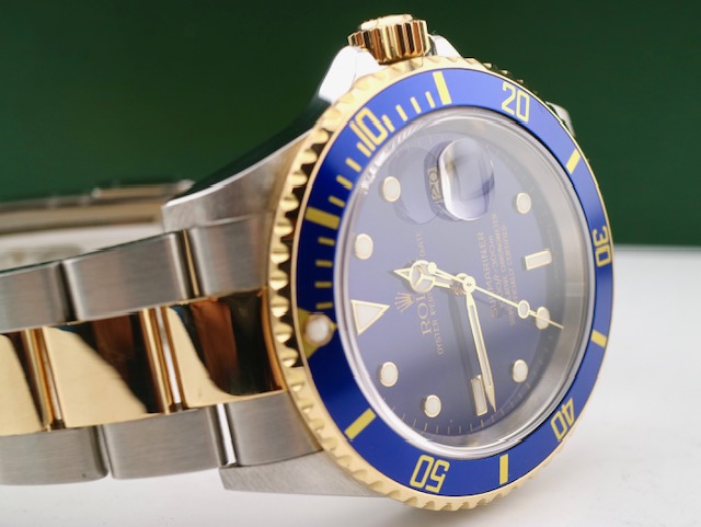 Once again we have procured another fabulous Bluesy and priced far lower than brand new. This iconic timepiece features gold all the way through the clasp, no holes case, and is unpolished amazing condition. This one wont last long. call us today