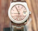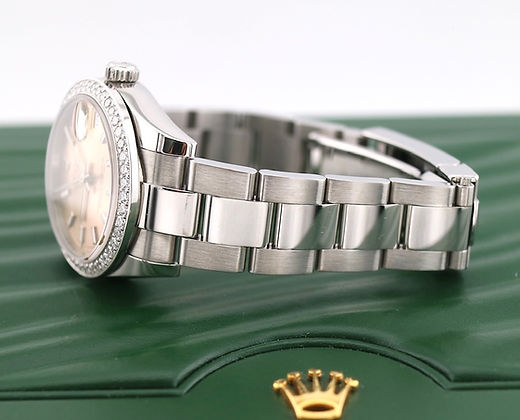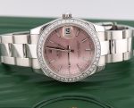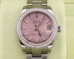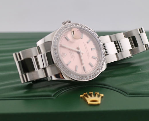 Treat yourself or your special someone with this ladies 31mm Rolex Datejust 31mm pink dial and diamond bezel. Sublte yet stunning fashion accessory for your next night out on the town