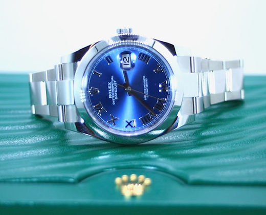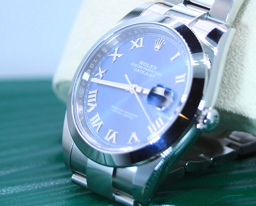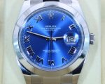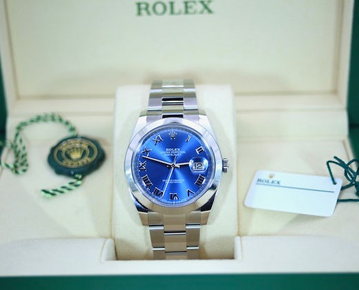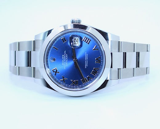Beautiful Rolex DateJust in like new condition. Simple clean lines with oysterbracelet and smooth bezel. Limited Azzuro blue dial with roman numerals