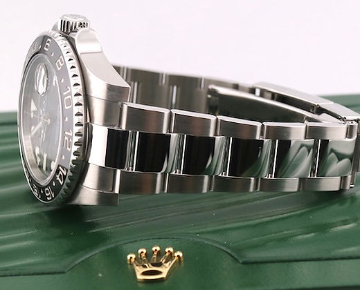 The Rolex GMT Master II designed for the professional pilot or world traveler. Allows for time to be kept in multiple time zones. This has become one of Rolex’s most popular pieces. The black bezel is discontinued thus making this a must have for any collector.