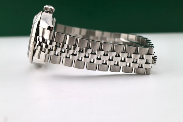 Gorgeous ladies rolex datejust with factory set star diamonds and diamond numerals. Very hard to find in the silver dial with jubilee and fluted bezel. Absolute understated elegance for the Southern Lady.