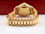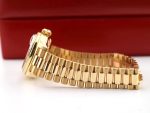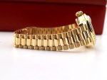 This stunning Rolex Lady-Datejust 69178 President Bracelet is the perfect accessory for any luxurious outfit. The watch features a sunburst dial pattern with diamond markers and round indexes, all enclosed in a solid yellow gold case with a fluted bezel. The bracelet is made of the same yellow gold material and has a concealed folding crownclasp closure.