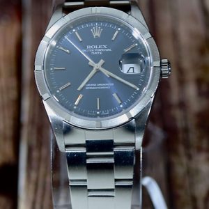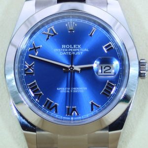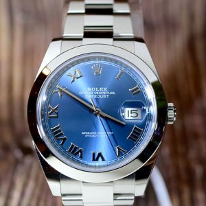 Beautiful Rolex DateJust in like new condition. Simple clean lines with oysterbracelet and smooth bezel. Limited Azzuro blue dial with roman numerals