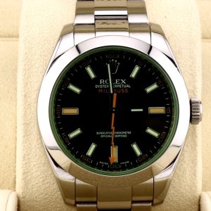 For the scientist out there or just those that like to have fun around magnets. Magnets and automatic watches do not mix. Thus the minds at Rolex developed the Milgauss specifically designed for those scientist, engineers, doctors that are exposed to a magnetic field. The Milgauss was discontinued in 2023 and thus becomes one of the most desired Rolex's. We have procured one in excellent conditon. Own it today