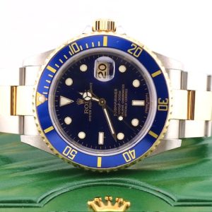 Once again we have procured another fabulous Bluesy and priced far lower than brand new. This iconic timepiece features gold all the way through the clasp, no holes case, and is unpolished amazing condition. This one wont last long. call us today