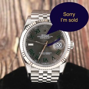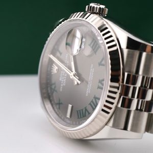 In honor of the most prestigious tennis tournament at the All England Lawn Tennis Club we present the Rolex 41mm Wimbledon DateJust. The green roman numberals and rhodium dial are the perfect combination. Probably the most sought after color combination, we have this watch for your preview at Knox Luxury Watches