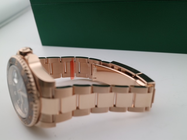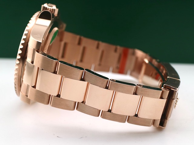 The epitome of Luxurious – Sold 18k Rose Gold timepiece from Rolex. Make a splash at your next business meeting or black tie event. Extra special with the matching 2 tone “rootbeer” bezel and black dial. True and tested, multiple time zones for the work traveler.