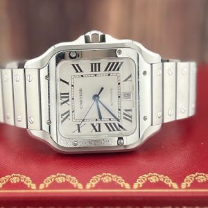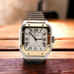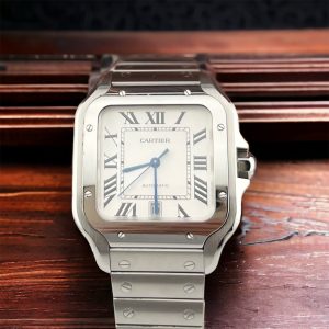 Subtle Elegance with clean lines and Cartier craftsmanship describes this Must De Cartier Santos. Switch the bracelet to the (included) brown leather Cartier strap to change the look. A must have accessory for your next business meeting Model: WSAA0018 Year:2022 Size: 41mm Case Material: steel Bracelet: steel Movement: Rolex Automatic Includes: inner/outer box, booklets, warranty card, hangtags Compare at new for $7,750