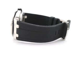 Elevate your style with this luxurious Audemars Piguet Royal Oak Offshore wristwatch. Crafted from stainless steel, this watch boasts a sleek silver case finish and a two-piece rubber strap in classic black. The white dial is complemented by baton indexes and a gray bezel, making it perfect for both casual and formal occasions.