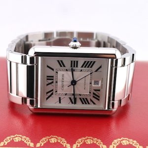 Elevate your style with this sophisticated Cartier Tank wristwatch, designed for the modern man. The sleek rectangular silver case and smooth silver bezel perfectly complement the silver bracelet, creating a timeless piece that exudes luxury. The dial, adorned with elegant Roman numerals, features a date indicator and is powered by a mechanical automatic movement, made in Switzerland. Brand - Cartier ref - WSTA0053 case size - 41mm case material - stainless steel bracelet material - stainless steel movement - Cartier automatic condition - new/unworn year - 2023 comes with inner/outer box - booklets - warranty card dated 2023