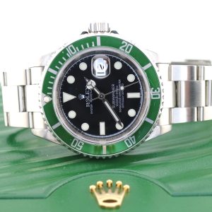 Newer and collectible Rolex Submariner - black dial - green bezel insert - Kermit the frog. Engraved rehaute and very nice preowned condition This is a must for every collectors or enthusiasts collection.